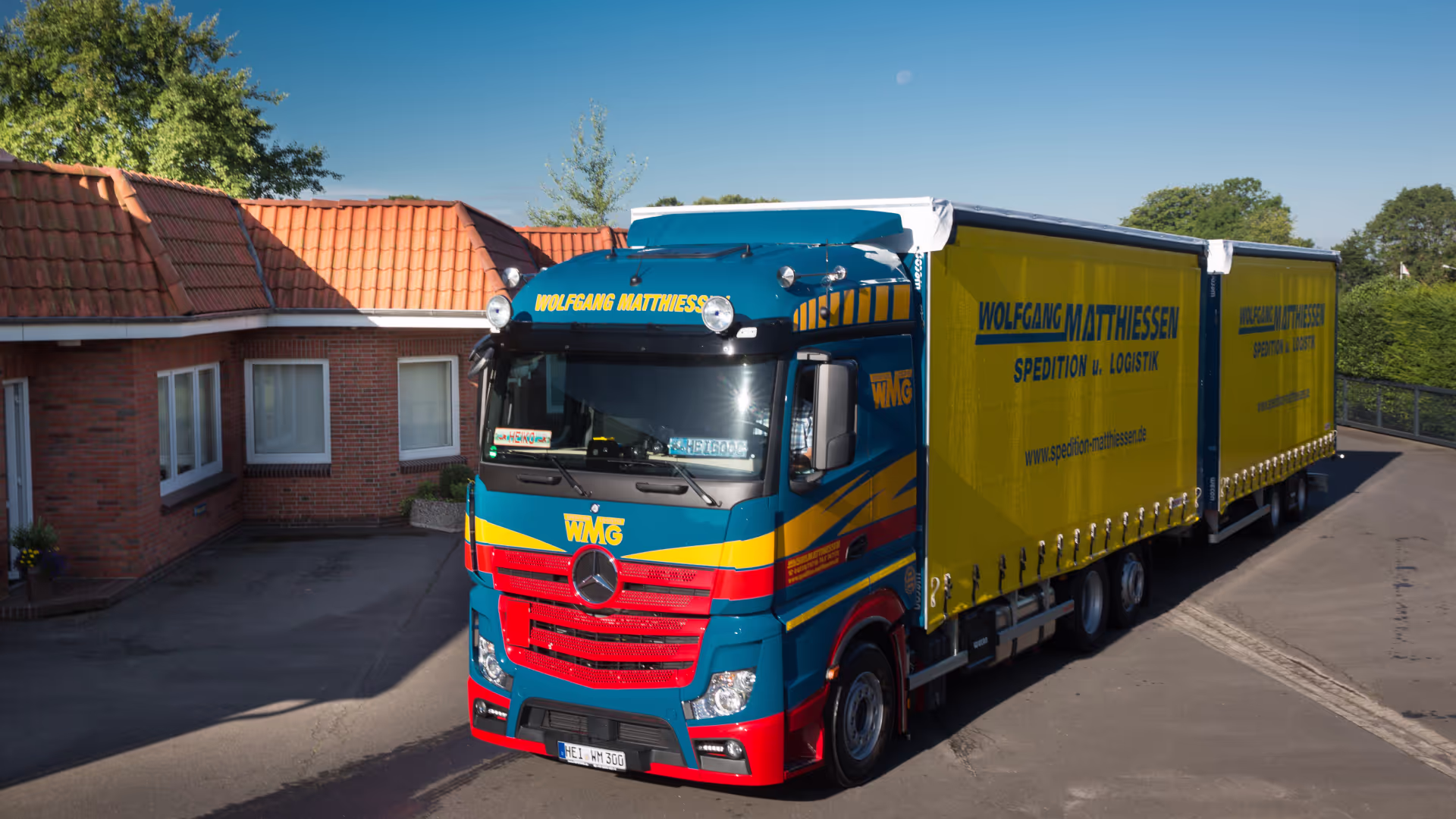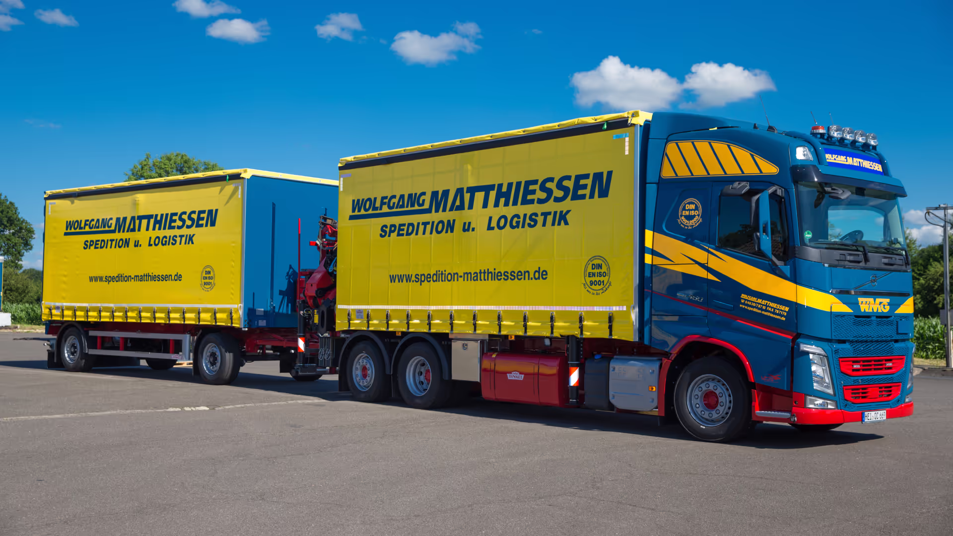Mit über 65 Fahrzeugen verfügt die Spedition Matthiessen über einen der leistungsstärksten Fuhrparks der Region. Ob Sattelauflieger, Gliederzüge, Mitnahmestapler, Kranwagen oder Silofahrzeuge – wir haben immer die passende Transportlösung für Ihre Anforderungen.